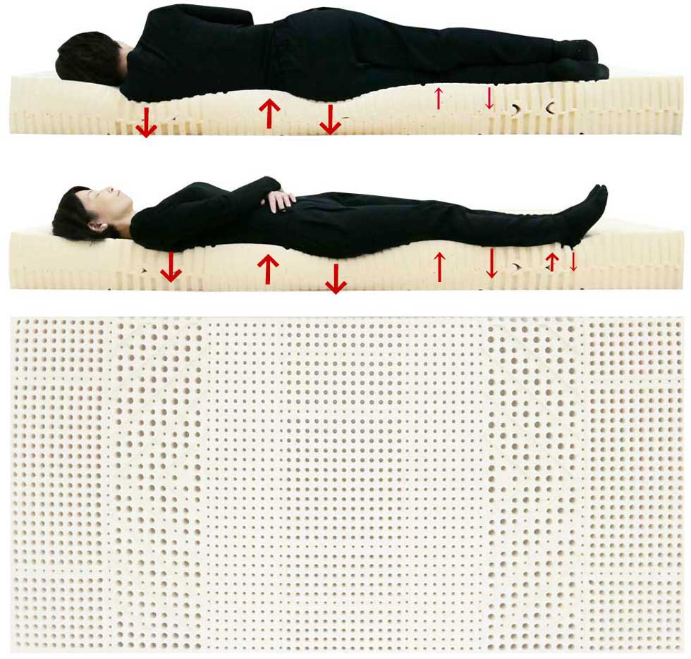 背中や尻は柔軟に吸収し腰はしっかり支えることができるから腰が楽なマットレスなのです。