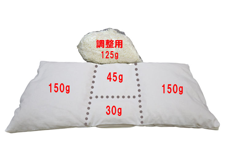 詰め物は100g単位でも販売しています。 お買い上げ後も使う人が自分で調整可能です。