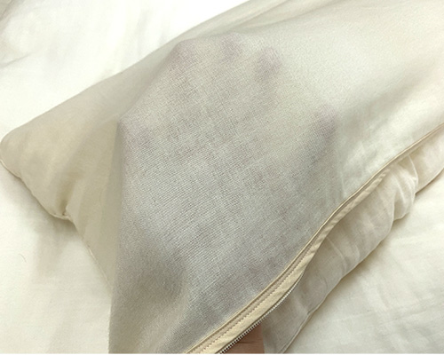 中に本麻(ラミー)綿入りのリネン麻側生地のピロケースです。