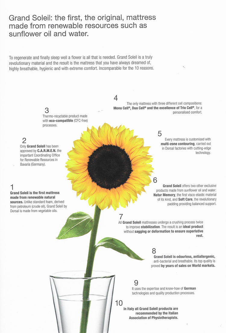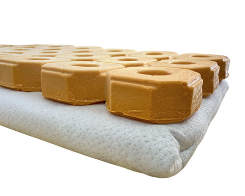 一般的なウレタンに科学物質を含ませた低反発ウレタンとは違い、反発力は低いが腰のあるテクノチューブは、ひまわりフォームの特性と補い合い、沈み込まずに、突き上げられず、絶妙の使用感となっています。