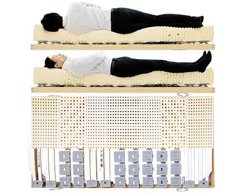 - 7つのゾーンが人の寝姿勢を立っている姿勢に近い姿勢で寝ることを可能にし快適睡眠を実現