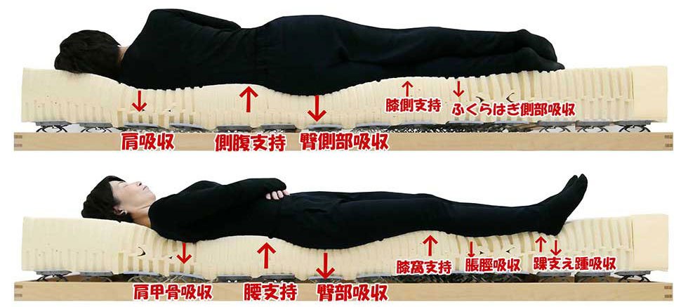 それらが「適度な柔らかさで体を包み、しっかりと支えるマットレス(と同時に最高の機能を有するウッドスプリング)」の働きでなければ