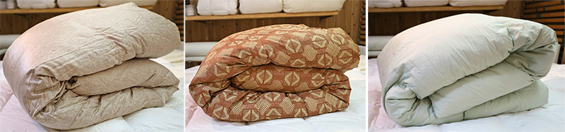 一般的な羽毛布団は売り場で目を引く華やかな「色目や柄」「ふっくら感」という「売る為に良いもの」を重視した造りになっています。